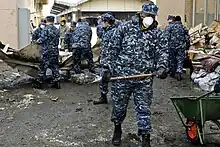 Sailors wearing the Navy Working Uniform during cleanup efforts in Japan after the 2011 tsunami.