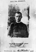 Šarić wanted to secure the state stipend for Čule.[19][20] Although his grades were satisfying, Čule also needed confirmation on the property status of his parents.[20] However, the bishop of Mostar-Duvno Alojzije Mišić intended to appoint him a parish priest in Blagaj, from where he expelled a local Franciscan for disorderly conduct and couldn't replace him with another Franciscan due to the opposition from the locals. The Provincial of the Herzegovinian Franciscans asked Mišić to find a diocesan priest for the task.[19][21] Čule was supposed to take the post on 8 September 1921. This endangered Čule's intention to continue his education.[22] However, the Provincial changed his mind, and proposed Mišić yet another Franciscan for the duty.[19] Mišić agreed to drop the appointment but still insisted to keep Čule as a parish priest or a chaplain. Nevertheless, Čule asked the bishop to send him for further education.[19][21] The time for the stipend already expired.[21] However, the rector of the Catholic Faculty of Theology in Sarajevo Antun Prešern managed to arrange a place for Čule at the Jesuit Collegium Canisianum in Innsbruck, Austria.[19][21] As he didn't manage to secure the stipend, Čule managed his financing by himself.[19] At the end of September 1921, Čule was in Innsbruck. The study system was the same as in Sarajevo, which suited Čule.[21] On 12 July 1912, Čule defended his doctoral thesis titled De statu hominis of St. Bonaventure and was given the title of doctor of theology. He finished his studied in Innsbruck with summa cum laude.[19][21]