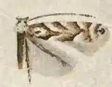 The length of the forewings is 3–4 mm. Adults are on wing from July to mid-August and again from late August to November in two generations.