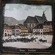 The Council Square (Piața Sfatului in Romanian, former Marktplatz in German, Főtér or Tanács tér in Hungarian) is located in the historic centre of Brașov, Romania.[1] It obtained its right to hold markets in 1520, but it has been the place for weekly and annual markets since 1364, being visited by merchants from the country and abroad. It is surrounded by 18th-19th century houses, most of which are historical monuments.