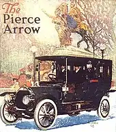 ![]() 1908 advertisement for Pierce-Arrow automobile; artwork by Louis D. Fancher |