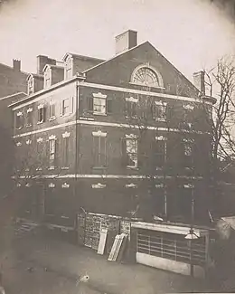 Butler disinherited his only surviving son, Thomas Butler, along with his French-born wife and children.[9] Four of Butler's daughters reached adulthood, but only one of them, Sarah Mease, married or had children. Butler initially planned to leave his entire fortune to Sarah's eldest son, Pierce Butler Mease, but the boy died in 1810 at age 9. Butler told Sarah he would devise his estate in equal parts to her three surviving sons (including one born that year), provided they irrevocably adopt "Butler" as their surname. Two of Sarah's sons, John Mease and Pierce Butler Mease (born in 1810 and named for the brother who died), duly changed their surnames to inherit portions of the estate. Until the grandsons came of age, Butler's other surviving daughters, Frances and Anne Elizabeth ("Eliza"), had use of the most productive lands.[6]