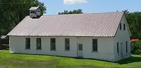The mechanical hay baler had been invented in the 1850s, and was in widespread use by the 1890s.[9] The first documented use of hay bales in construction in Nebraska was a schoolhouse built in 1896 or 1897; unfenced and unprotected by stucco or plaster, it was reported in 1902 as having been eaten by cows.[8] Between 1896 and 1945, an estimated 70 straw-bale buildings, including houses, farm buildings, churches, schools, offices, and grocery stores had been built in the Sandhills.[9] In 1990, nine surviving bale buildings were reported in Arthur and Logan Counties.[6]