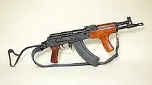 The Pistol Mitralieră model 1963/1965 (abbreviated PM md. 63 or simply md. 63) is a Romanian 7.62x39mm assault rifle. Developed in the late 1950s, the PM md. 63 was a derivative of the Soviet AKM produced under license.[1] It was the standard issue infantry weapon of the Army of the Socialist Republic of Romania until the late 1980s, after which it was gradually superseded by the Pușcă Automată model 1986, a derivative of the Soviet AK-74.
