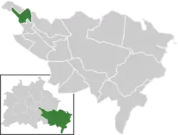 Location of Plänterwald in Treptow-Köpenick and Berlin | |