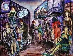 Place des Martyres is the title of a series of over 250 watercolors and drawings executed in New York and Beirut between 1971 and 1974 by Nabil Kanso.[1] The subjects of the works in the series are based on the women headquartered in the red-light district of Beirut city center called el Bourj, and after World War I[2] named Place des Martyrs French for Martyrs’ Place[3] in memory of dozens of Arab nationalists who were hanged in 1915-16 during Ottoman rule.[4]
