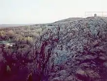 According to the United States Census Bureau, the town has a total area of 25.3 square kilometres (9.8 sq mi), of which 9.7 square miles (25.2 km2) is land and 0.077 square mile (0.2 km2, or 0.72%, is water.[2] The east side of the town is bordered by two prominent peaks of the Metacomet Ridge: Pinnacle Rock and Bradley Mountain. The 51-mile (82 km) Metacomet Trail traverses those peaks.