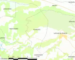 Planèzes is located in the canton of La Vallée de l'Agly and in the arrondissement of Perpignan. Planèzes is part of the Fenouillèdes.
