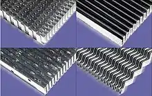 A plate-fin heat exchanger is a type of heat exchanger design that uses plates and finned chambers to transfer heat between fluids, most commonly gases. It is often categorized as a compact heat exchanger to emphasize its relatively high heat transfer surface area to volume ratio. The plate-fin heat exchanger is widely used in many industries, including the aerospace industry for its compact size and lightweight properties, as well as in cryogenics where its ability to facilitate heat transfer with small temperature differences is utilized.[1]
