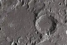 Playfair is a lunar impact crater that is located in the rugged southern highlands on the near side of the Moon. It was named after the Scottish geologist and mathematician John Playfair.[1] It lies along the eastern rim of the eroded satellite crater Playfair G, a formation that is almost twice the diameter of Playfair itself. Playfair is nearly due north of the crater Apianus, and to the southwest of the Abenezra–Azophi crater pair.
