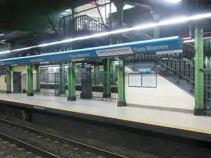 Plaza Miserere (officially Plaza de Miserere) is a station on Line A of the Buenos Aires Underground.[1] The station is located between Alberti and Loria / Pasco stations on the A line underground. Plaza Miserere has interchange with Once underground station of the H line and connection to the Sarmiento line commuter rail service within Once railway station, the central station of the Domingo Faustino Sarmiento Railway.[2]