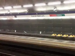 Plaza de Puente Alto is an underground metro station and the southern terminal station of Line 4 of the Santiago Metro network, in Santiago, Chile. The station is located under the square of the same name, Plaza de Puente Alto, parallel to Concha y Toro Avenue at the junction with Manuel Rodríguez avenue in the commune of Puente Alto. The station was opened to the public on November 30, 2005 as part of the inaugural section of the line between Vicente Valdés and Plaza de Puente Alto.[2]