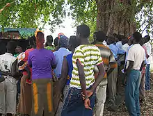 Pojulu from Lainya line up across the road to receive the SPLM delegation from Juba Southern Sudan 2009