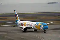 On 25 June 2023, All Nippon Airways introduced a Boeing 777-300ER (JA784A) with a painted Pokémon livery called "Eevee Jet NH." It will operate on USA and London long haul flight routes from its base at Tokyo Haneda Airport.[26]