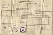 A document listing assets renounced by a Pole during repatriation