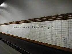 Politekhnichnyi Instytut (Ukrainian: Політехнічний інститут, ⓘ) is a station on Kyiv Metro's Sviatoshynsko-Brovarska Line. The station was opened on 5 November 1963, and is named after Kyiv's Polytechnic Institute located near the station. It was designed by G.V. Golovko, B.V. Dzbanovsky, E.L. Ivanov, and M.M. Syrkin.