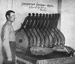 After a successful performance in Odessa the eleven members of the Capella ordered new banduras and in 1927 received new semi-chromatic Kiev type instruments made by Poltava bandura maker M. Domnenko.