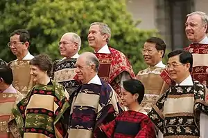APEC leaders wearing chamantos during the 2004 summit