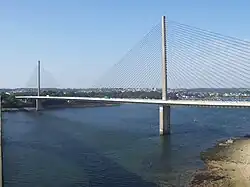The Pont de l'Iroise (French pronunciation: [pɔ̃ də liʁwaz], literally Bridge of the Iroise) is a cable-stayed bridge in Finistère, Brittany, France, which spans the Élorn river where it enters the roadstead of Brest. It carries route nationale 165, the road between Brest and Quimper, and connects Le Relecq-Kerhuon to the north with Plougastel-Daoulas to the south. The bridge is named after the Iroise Sea, into which the roadstead of Brest opens.
