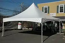A pop-up canopy (or portable gazebo or frame tent in some countries) is a shelter that collapses down to a size that is portable. Typically, canopies of this type come in sizes from five feet by five feet to ten feet by twenty feet. Larger or semi-permanent canopies are known as "marquees".