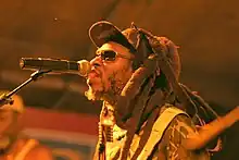 Publicity for blues parties was largely through word of mouth or over pirate radio stations and generally did not include precise details of addresses or locations, so sound systems attracted loyal but highly localised followings.[127] Sounds would also often "play out" in neighbouring areas or challenge other sound systems in a competitive sound clash, allowing the more prominent outfits to attract wider attention – during the 1970s and 1980s the better-known Handsworth sounds would attract visitors from as far afield as London, Manchester and Bristol.[128] Notable Birmingham sound systems whose reputations extended beyond the city included Quaker City, which was founded in 1965;[129] Duke Alloy, which was founded in 1966 and featured the toaster Astro who later became part of UB40;[130] and Wassifa, which featured Macka B, the most influential British toaster of the 1980s.[131] The founders of the reggae band Eclipse, who met at a blues party, later recalled "Blues would took place everywhere. You only had to go out in Lozells or down the Soho Rd, there was loads going on, you could stand and listen to the music coming out of the houses, pubs and clubs."[123]