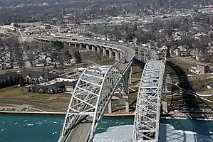 The Port Huron–Sarnia Border Crossing connects the cities of Port Huron, Michigan and Sarnia, Ontario. It is located at the Blue Water Bridge at the St. Clair River.