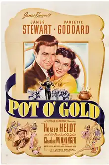 Pot o' Gold is a 1941 American romantic musical comedy film starring James Stewart and Paulette Goddard, directed by George Marshall,[2] and based on the radio series Pot o' Gold. The film was released April 3, 1941, eight months before the NBC radio series came to an end. Paulette Goddard's singing voice was dubbed by Vera Van. The film was known as The Golden Hour in the United Kingdom.