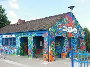 Poznań Dębiec railway station is a railway station serving the south of the city of Poznań, in the Greater Poland Voivodeship, Poland. The station is located on the Wrocław–Poznań railway. The train services are operated by Przewozy Regionalne and Koleje Wielkopolskie.