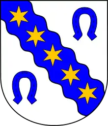 Emblem of the administrational district Velká Chuchle, the horseshoes demonstrate the importance of the racecourse to the surrounding areas
