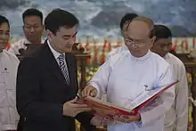 Abhisit officially visited Myanmar in October 2010 to strengthen the relationship between the two countries. Abhisit met with Senior-General Than Shwe to promote cordial ties and bilateral development between the neighboring countries. The meeting covered subjects on rule of law, stability and development in border areas, economy and technology cooperation, boosting bilateral trade and investment, promoting tourism, and building a deep-sea port in Dawei, Myanmar workers in Thailand, and internal affairs of both countries.