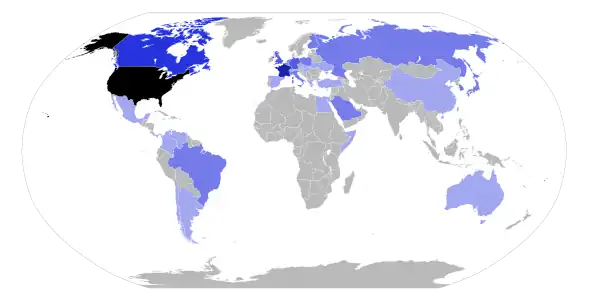 In 1987, the U.S. and Canada had reached a free trade agreement that eliminated many tariffs between the two countries. President Reagan had intended it as the first step towards a larger trade agreement to eliminate most tariffs among the United States, Canada, and Mexico.[89] Mexico had resisted becoming involved in the agreement at the time, but Carlos Salinas de Gortari expressed a willingness to negotiate a free trade agreement after he took office in 1988.[90] The Bush administration, along with the Progressive Conservative Canadian Prime Minister Brian Mulroney, spearheaded the negotiations of the North American Free Trade Agreement (NAFTA) with Mexico. In addition to lowering tariffs, the proposed treaty would restrict patents, copyrights, and trademarks.[91]