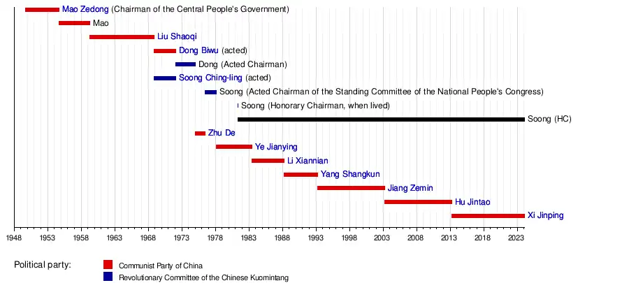 - ↑ "历届中华人民共和国主席". www.gov.cn. Archived from the original on 15 June 2020. Retrieved 3 August 2022.