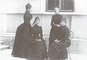 Louise, the princess' older sister, married in 1875 with a cousin, Prince Philipp of Saxe-Coburg and Gotha and settled in Vienna. Before her prestigious marriage to Rudolf, Crown Prince of Austria, in 1881, Stéphanie played a maternal role with her younger sister, somewhat neglected by her mother.[9] From the age of 8, Clémentine was the only child of the Belgian royal couple to stay in Belgium and spent a sad and lonely childhood at the Palace de Laeken. Even though she sees her cousins Henriette and Joséphine Caroline weekly, her universe was essentially limited to adults, including her governess Omérine Drancourt.[8] According to her biographer, Dominique Paoli, "the unbalanced Queen gives the impression of a mother led by her mood. [She] makes Laeken's atmosphere unbreathable. Jealousy often guides her [...] She is angry with the whole world for her misfortunes, and, of course, Clémentine sometimes pays the price for it".[8]