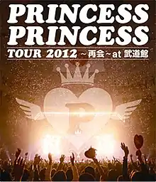 Princess Princess Tour 2012: Saikai at Budokan (PRINCESS PRINCESS TOUR 2012~再会~at 武道館) is a live video album by the Japanese girl band Princess Princess, released on March 27, 2013, by SME Records on DVD and Blu-ray, and CD. It was recorded on November 23, 2012, at Nippon Budokan during the band's reunion tour, with proceeds of the album's sales going to the reconstruction of Japan after the 2011 Tōhoku earthquake and tsunami.[1][2][3]