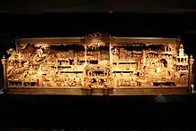 Other exhibitions were in the year 1934 in Kostelec nad Orlicí, in 1935 in Prague, in 1936 in Brno and in 1937 in Bratislava, Piešťany and Hlohovec.[6] Continued exhibiting was interrupted by World War II. Later, the crib was exhibited [7] at the World's fair in Montreal (1967), where more than 8 million visitors saw it,[8] at Madurodam in The Hague (1968) and at the Ideal Home Show in London (1970). Each of these displays met with great success.[6] Since 1972, the crib has been exhibited only at the Museum of Christmas Cribs itself.[1]