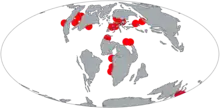 Though not the largest, Prognathodon lutugini was a large species of Prognathodon at an estimated 8 meters in length.[24] It is sometimes classified as its own genus, "Dollosaurus" and has been recovered from deposits of Late Campanian age in Ukraine. Fossils described as "Dollosaurus sp." have been recovered from deposits of a similar age in Sweden and Russia,[28] and may thus belong to P. lutugini as well.