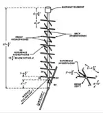 The array assembly also had electrical equipment required to make the electrical connection between array transducers and the transmission cable and for measurement and control functions that were housed in tanks at the bottom of the array assembly. At the top of the structure were four hydrophones in three coordinate axes that provided array orientation relative to acoustic positioning hydrophones.[45]
