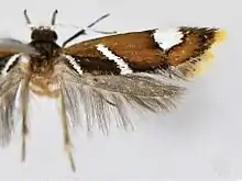 The wingspan ranges from 8 to 11.5 millimetres (0.31 to 0.45 in). The ground colour of the forewings is ochreous brown tinged with dark ochreous brown, sometimes scattered with black scales on the lower angle of the cell. The hindwings and cilia are grey.[1]