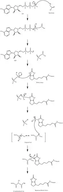 - ↑ Stubbe J, Fish S, Abeles RH (January 1980). "Are carboxylations involving biotin concerted or nonconcerted?". The Journal of Biological Chemistry. 255 (1): 236–242. doi:10.1016/S0021-9258(19)86289-0. PMID 7350155.