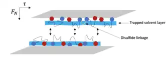 34. Zappone B, Greene GW, Oroudjev E, Jay GD, Israelachvili JN (February 2008). "Molecular aspects of boundary lubrication by human lubricin: effect of disulfide bonds and enzymatic digestion". Langmuir. 24 (4): 1495–508. doi:10.1021/la702383n. PMID 18067335.