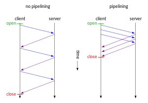 The pipelining of requests results in a dramatic improvement in protocol performance, especially over high latency connections (such as satellite Internet connections). Pipelining reduces waiting time of a process.