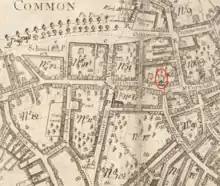 The Province House (1679–1864) was a mansion on old Marlborough Street in Boston, Massachusetts. Built in 1679, it was the home of merchant Peter Sergeant, and after 1716, the official residence of royal governors of the Province of Massachusetts Bay. Known for its great main staircase and original Tudor-style chimney stacks, the building fell into disrepair in the 19th century, partially burned in 1864, and was demolished in 1922.[1][2]