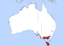 P. entrecasteauxii is found in the south-east of the continent of Australia, as well as in Tasmania and the islands of Bass Strait.
