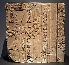 Ptolemy VIII probably had his young nephew Ptolemy murdered. According to Justin, Ptolemy VIII did the deed personally, on the night of his wedding to Cleopatra II in 145 BC, and the boy died in his mother's arms.[57] Documentary evidence from papyri indicates that in reality, the boy was initially maintained as heir and only removed sometime after the birth of Ptolemy Memphites,[55] since in c. 143 BC, Ptolemy the son of Ptolemy VI served as eponymous priest of Alexander the Great.[61] By the late 140s BC, Ptolemy Memphites had been declared heir,[56] and was depicted as king on reliefs of the Temple of Edfu, although there is no evidence for any co-regency between him and his father.[62]