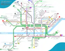 There are 9 Tram lines, with trams arriving usually every 10 min. Many sections are served by two lines, combining to give a 5-minute frequency during rush-hour.