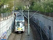 In city centre sections the rail tracks are underground, but run on their own separated section at ground level in the suburbs. The minimum service interval is 2.5 minutes, although the usual pattern is that each line runs with a 7.5- to 10-minute frequency which combines to approx 3–5 minutes on the city centre sections served by more than one line.