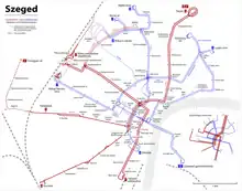 Public transport in Szeged, Hungary is provided by two companies, SzKT (short for the Hungarian name of Public Transport Company of Szeged) and Volánbusz. The former company operates trams and trolley buses, while the latter operates buses. SzKT is owned by the city.