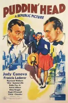 Puddin' Head is a 1941 American comedy film directed by Joseph Santley and written by Jack Townley and Milt Gross. The film stars Judy Canova, Francis Lederer, Raymond Walburn, Slim Summerville, Astrid Allwyn, Eddie Foy Jr., Alma Kruger, Hugh O'Connell and Chick Chandler. It was released on June 25, 1941 by Republic Pictures.[1][2][3]