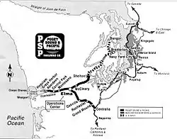 The PSAP interchanges with BNSF Railway and Union Pacific Railroad near Centralia, Washington. From there, the line reaches west to Grays Harbor, Washington, and northeast to Bangor, Washington, a total of nearly 80 miles (130 km). This line serves Naval Base Kitsap with its only rail connection to the rest of the North American rail network.