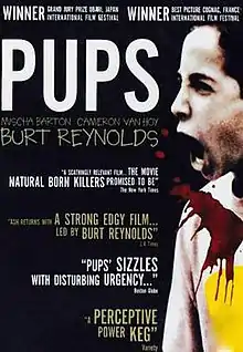 Pups is a 1999 American independent crime drama film written and directed by Ash, and starring Mischa Barton, Burt Reynolds and Cameron Van Hoy. The film centers on two young adolescents who embark on a bank robbery on their way to school. It premiered at the Los Angeles Independent Film Festival on April 18, 1999. Although well received critically, the film saw a limited release, which has been attributed to sensitivity surrounding the Columbine High School massacre that occurred two days after the premiere.[1]